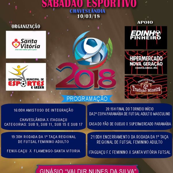 mar72018 Prefeitura divulga programação do Sabadão Esportivo em Chaveslândia Chaveslândia, Esporte e Lazer07/03/2018