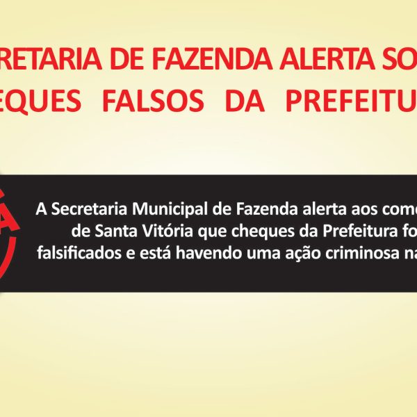 out62017 Secretaria de Fazenda alerta sobre cheques falsos da Prefeitura Fazenda e Planejamento06/10/2017