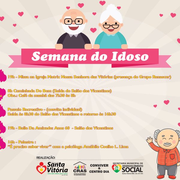 set292017 Semana do Idoso será comemorada em Santa Vitória com várias atividades Desenvolvimento Social29/09/2017