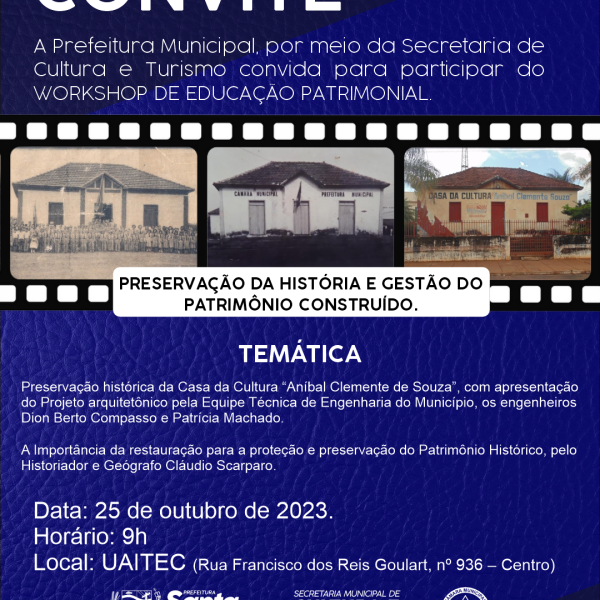 out162023 A Secretaria Municipal de Cultura e Turismo vai promover Workshop de Educação Patrimonial Cultura e Turismo16/10/2023
