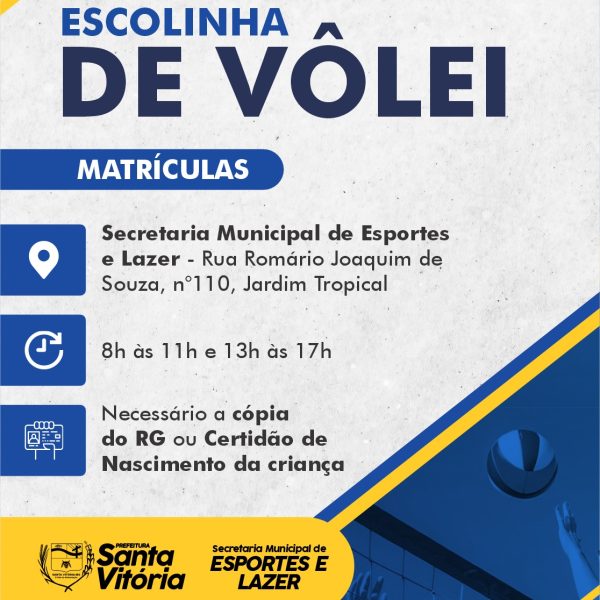 out62023 Escolinha de Vôlei está com as matriculas abertas em Santa Vitória Esporte e Lazer06/10/2023
