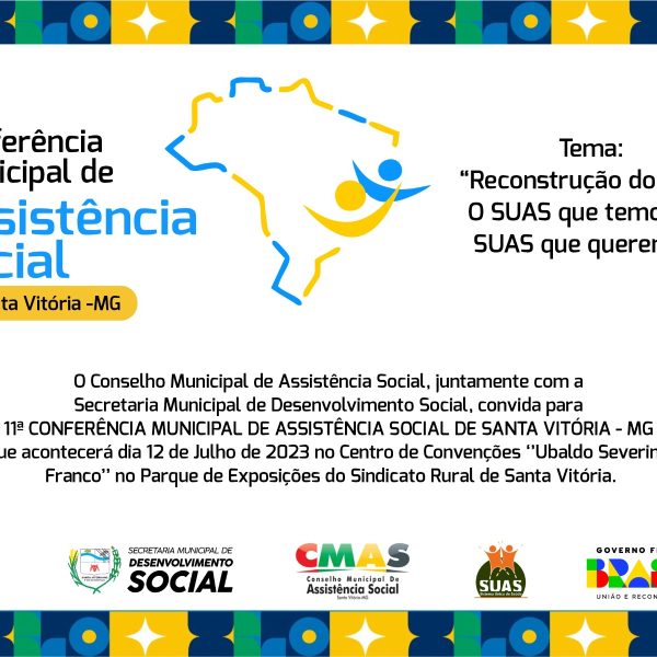 jul62023 11ª Conferência Municipal de Assistência Social acontecerá em Santa Vitória Desenvolvimento Social06/07/2023