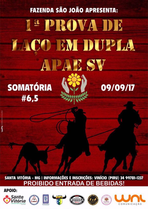 O evento é uma realização da Apae de Santa Vitória, com o apoio da Prefeitura e da Câmara Municipal de Santa Vitória.