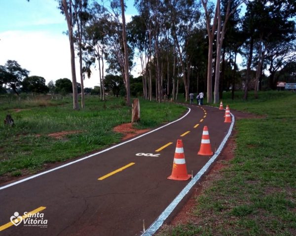 O pavimento asfáltico ao longo do trecho de 2.267 metros do caminhódromo de Santa Vitória recebeu nova sinalização viária horizontal, sendo executadas marcas longitudinais e inscrições no pavimento.
