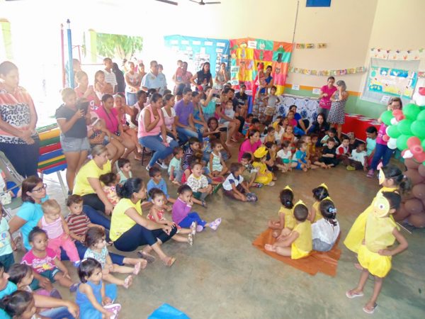 Inicialmente, a visita foi ao Projeto Aprendendo a Crescer, no Bairro Dom Alexandre e no distrito de Chaveslândia, na Creche Municipal Andeir Nunes da Silva.