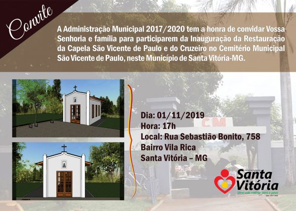 Nesta sexta-feira (1), Prefeitura e Secretaria Municipal de Educação e Cultura realizaram a inauguração da Capelinha e do Cruzeiro, no Cemitério Municipal “São Vicente de Paulo”, com o objetivo de resgatar as reminiscências culturais e oferecer ao patrimônio bem inventariado toda acessibilidade necessária, além da relevância do contexto cultural e a importância da conservação e recuperação para a identidade.