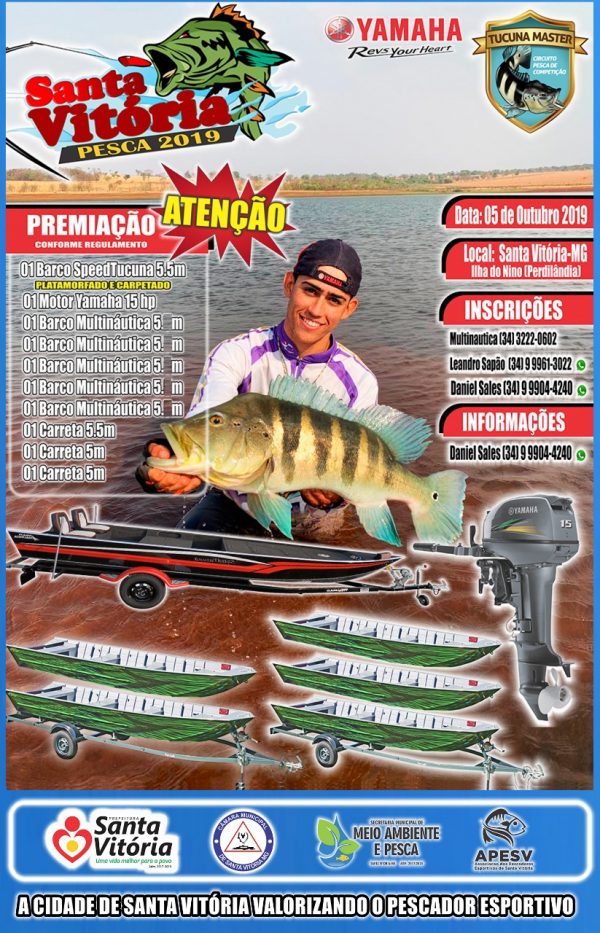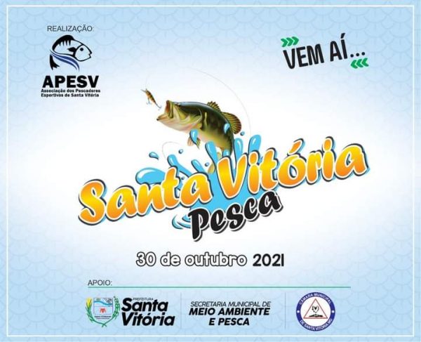 Com objetivo de valorizar o pescador esportivo, a Prefeitura de Santa Vitória, por meio da Secretaria Municipal de Meio Ambiente e Pesca e Associação dos Pescadores Esportivos de Santa Vitória (APESV) e com o apoio da Câmara Municipal, estará promovendo no dia 30 de outubro o Santa Vitória Pesca 2021.