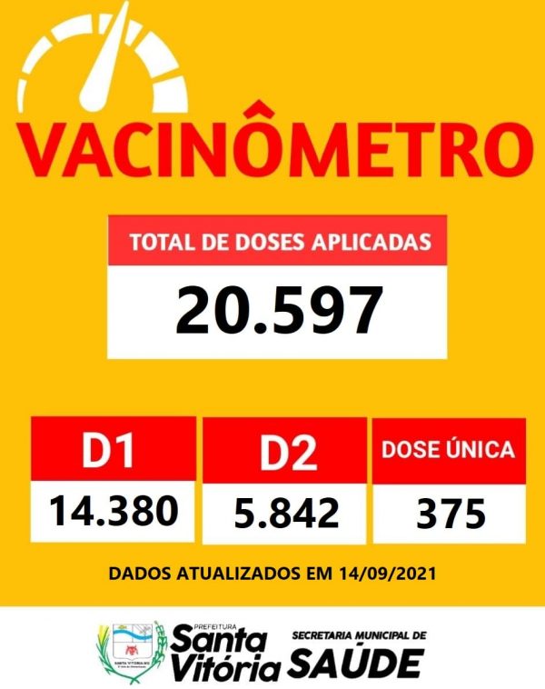 A Prefeitura de Santa Vitória, através da Secretaria Municipal de Saúde, visando a transparência dos dados relacionados a vacinação, divulga o Vacinômetro, uma ferramenta cujo objetivo é ofertar um balanço das doses de vacinas da Covid-19, demonstrando o quantitativo de doses aplicadas até o momento no município de Santa Vitória.